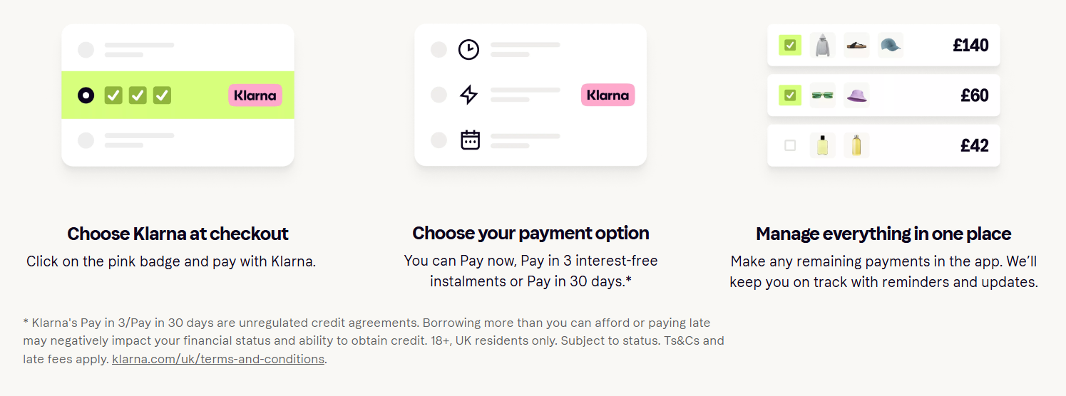 Find what you love and pay your way. With Klarna, you’re in control of how you want to pay every time you shop.