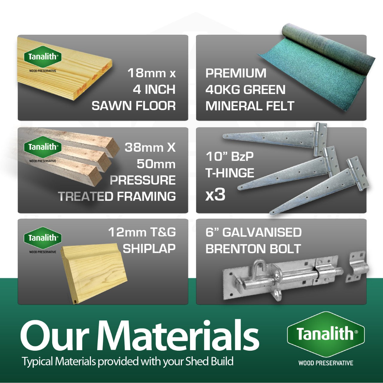 Even though our sheds come pressure treated tanalised prior to delivery, we still recommend that the item is given an oil or spirit-based treatment which will give if protection against water being soaked into the timber. This will also prolong the life of the building.