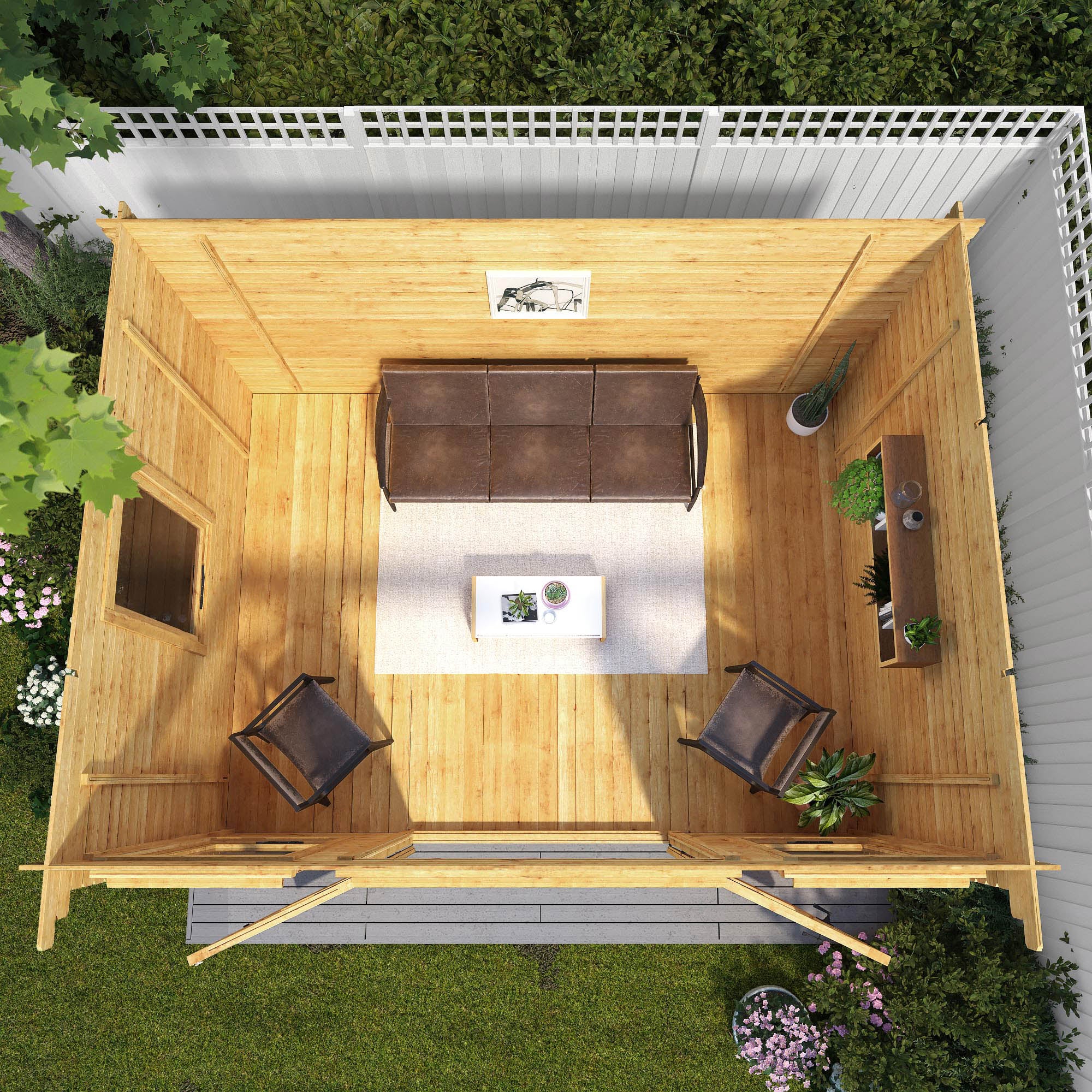 This modern log cabin is constructed using high quality, 19mm, Baltic pine log boards that interlock each other to form rigid and strong panels. The interlocking system creates a weatherproof and heat retaining structure, meaning you can use this log cabin all year around! The roof and floor are constructed with hard wearing tongue and groove boards to form a robust and long lasting finish. High quality roofing felt is provided to cover the roof, to protect the building from the elements.